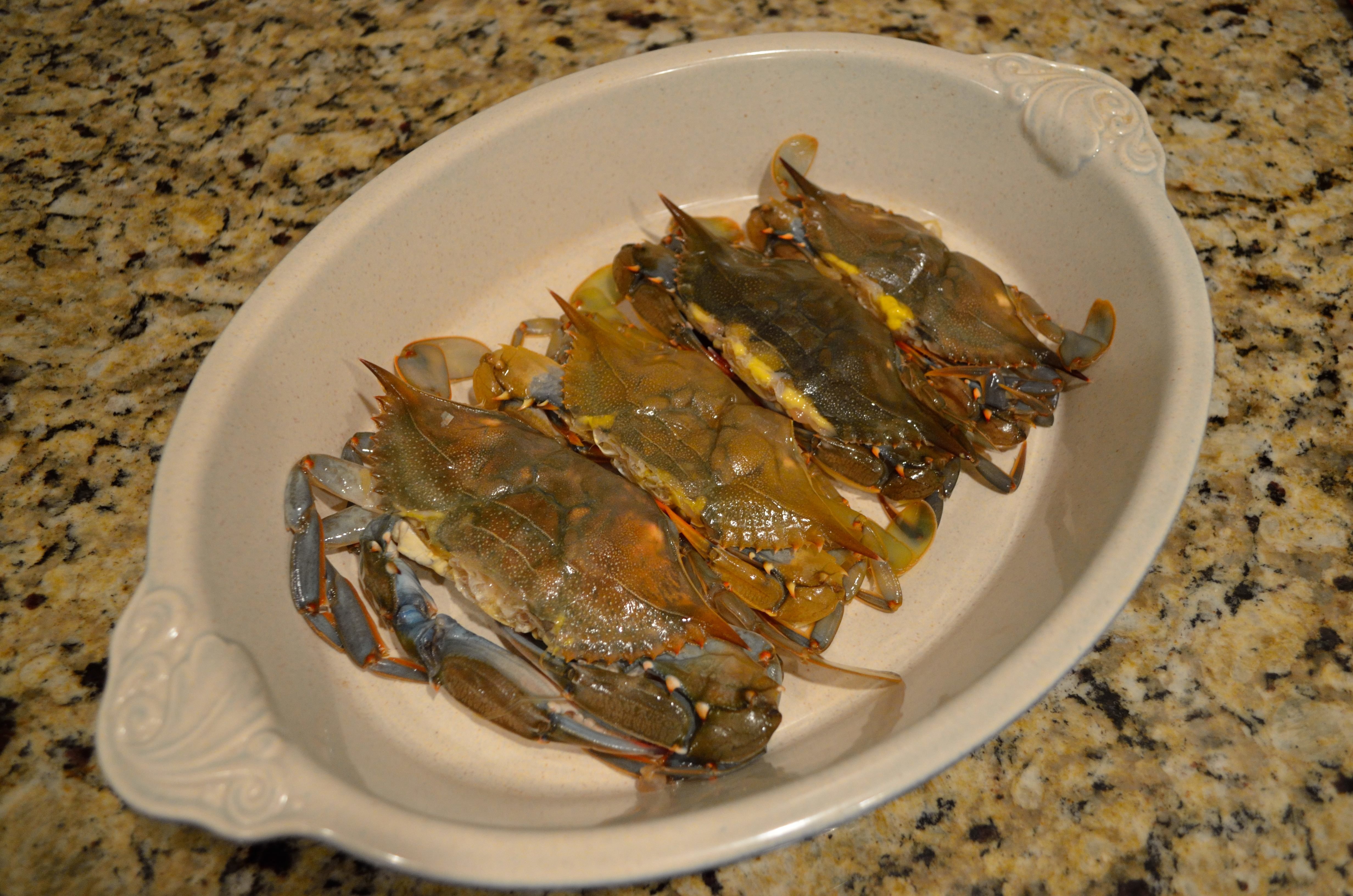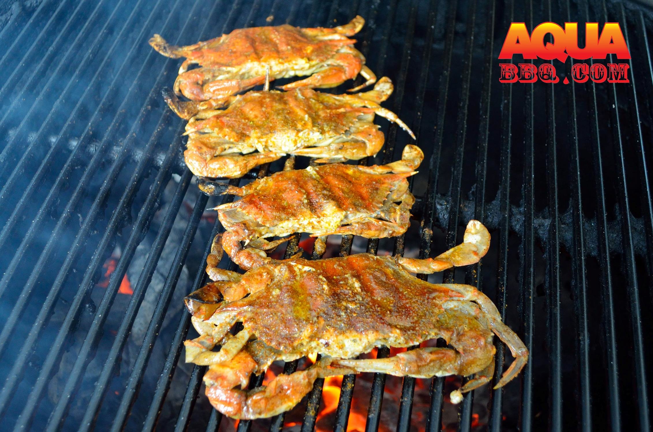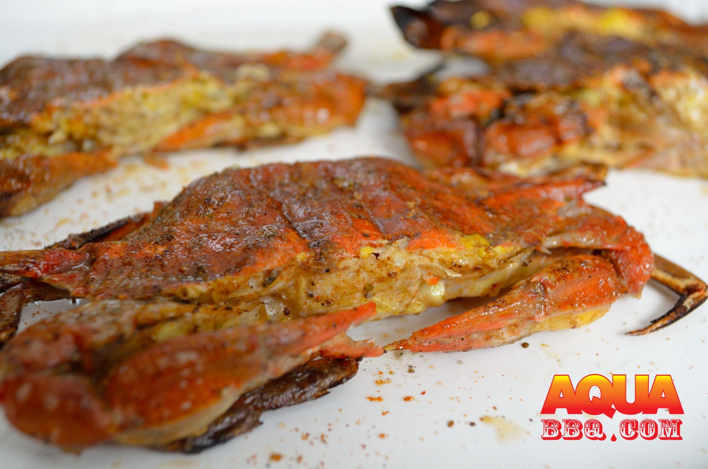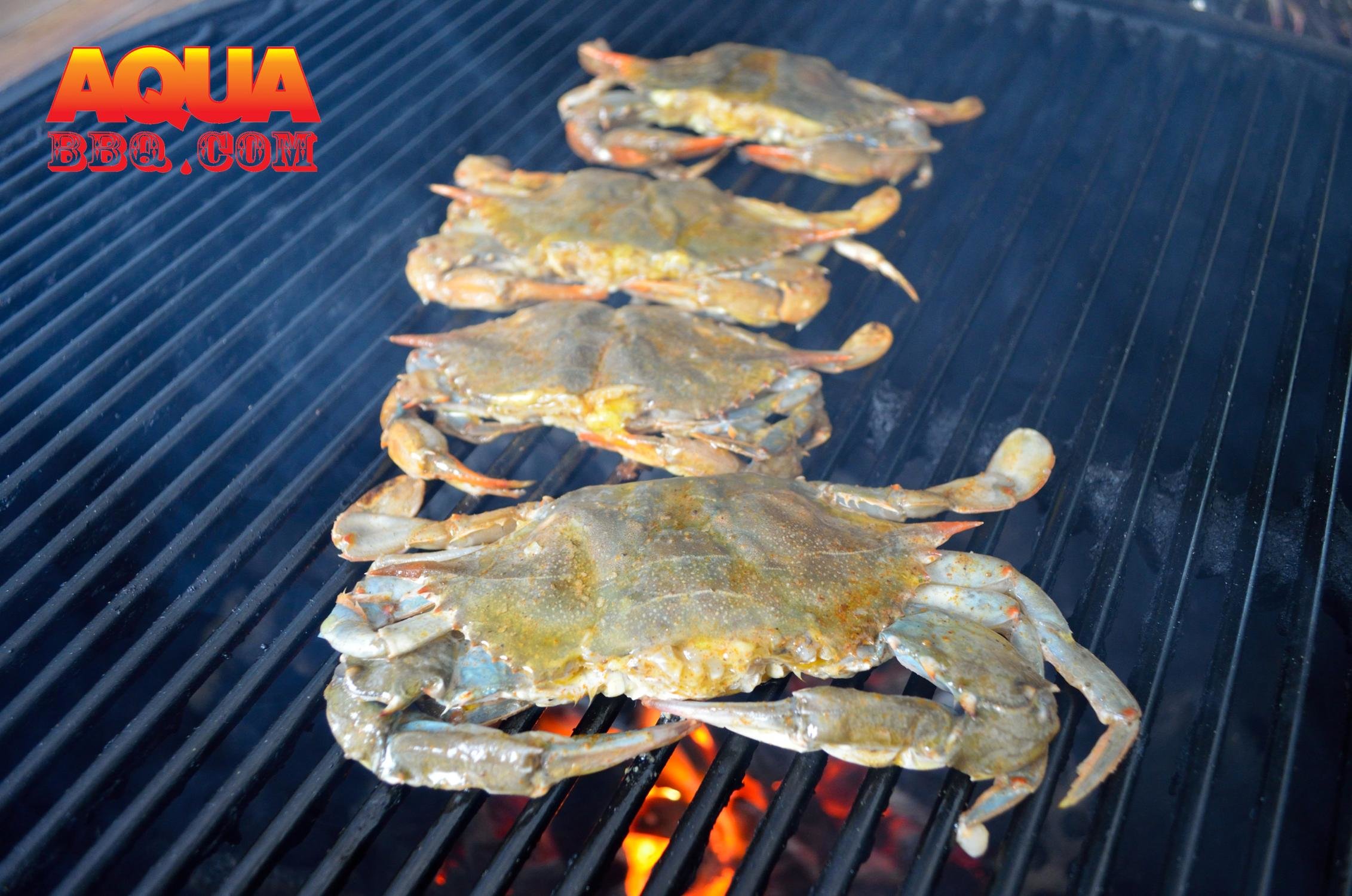 Prepare the Primo for direct grilling. Prepare a butter sauce for basting- a tablespoon of unsalted butter per crab, an appropriate amount of Old Bay, and chopped scallions. When ready to grill gently pat dry the crabs and then top coat with the butter baste.
