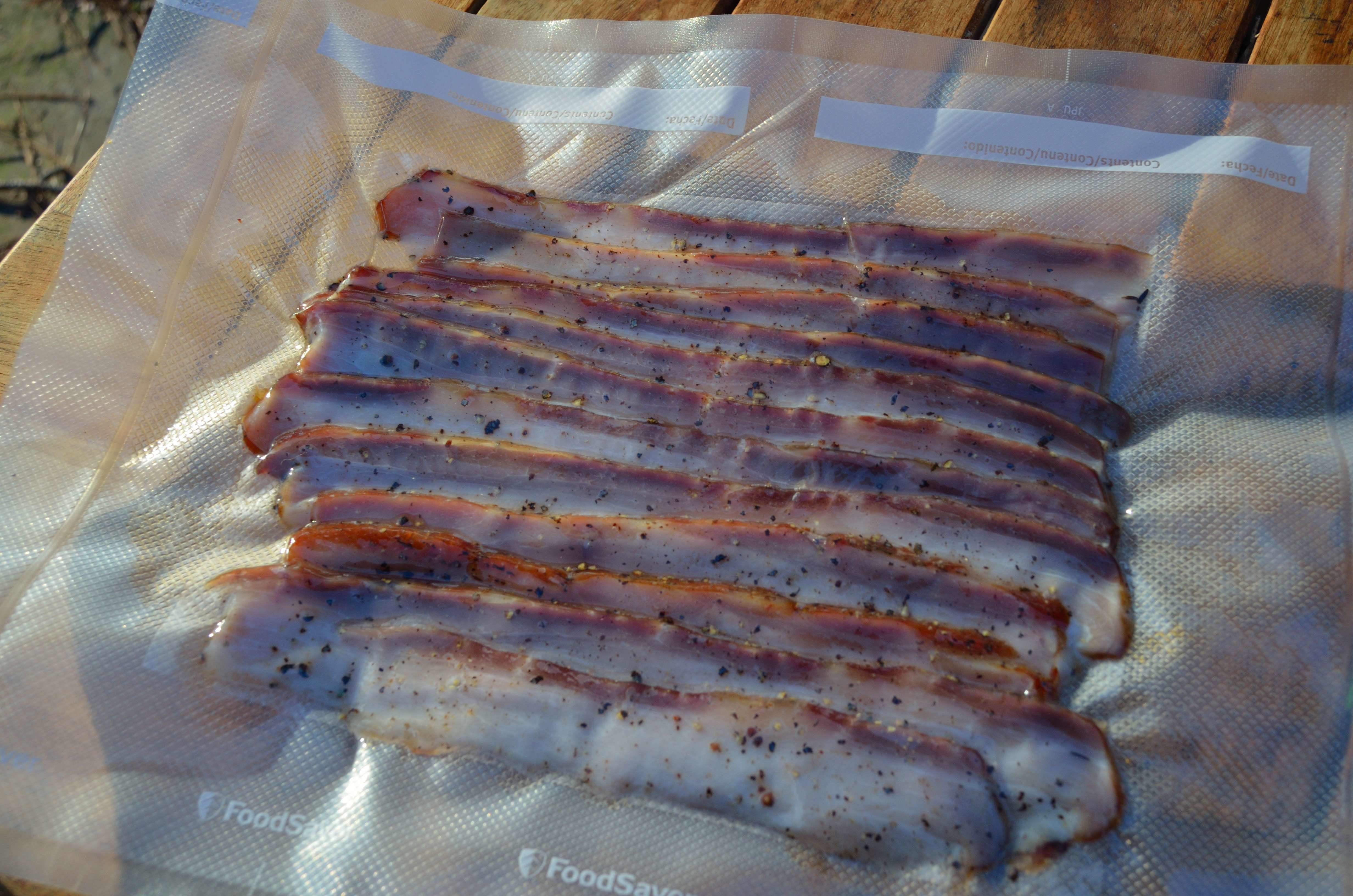 A “foodsaver” is another helpful tool to package the bacon. Here we cracked some pepper on it before it was sealed. Your friends won’t complain if you hand them one of these.