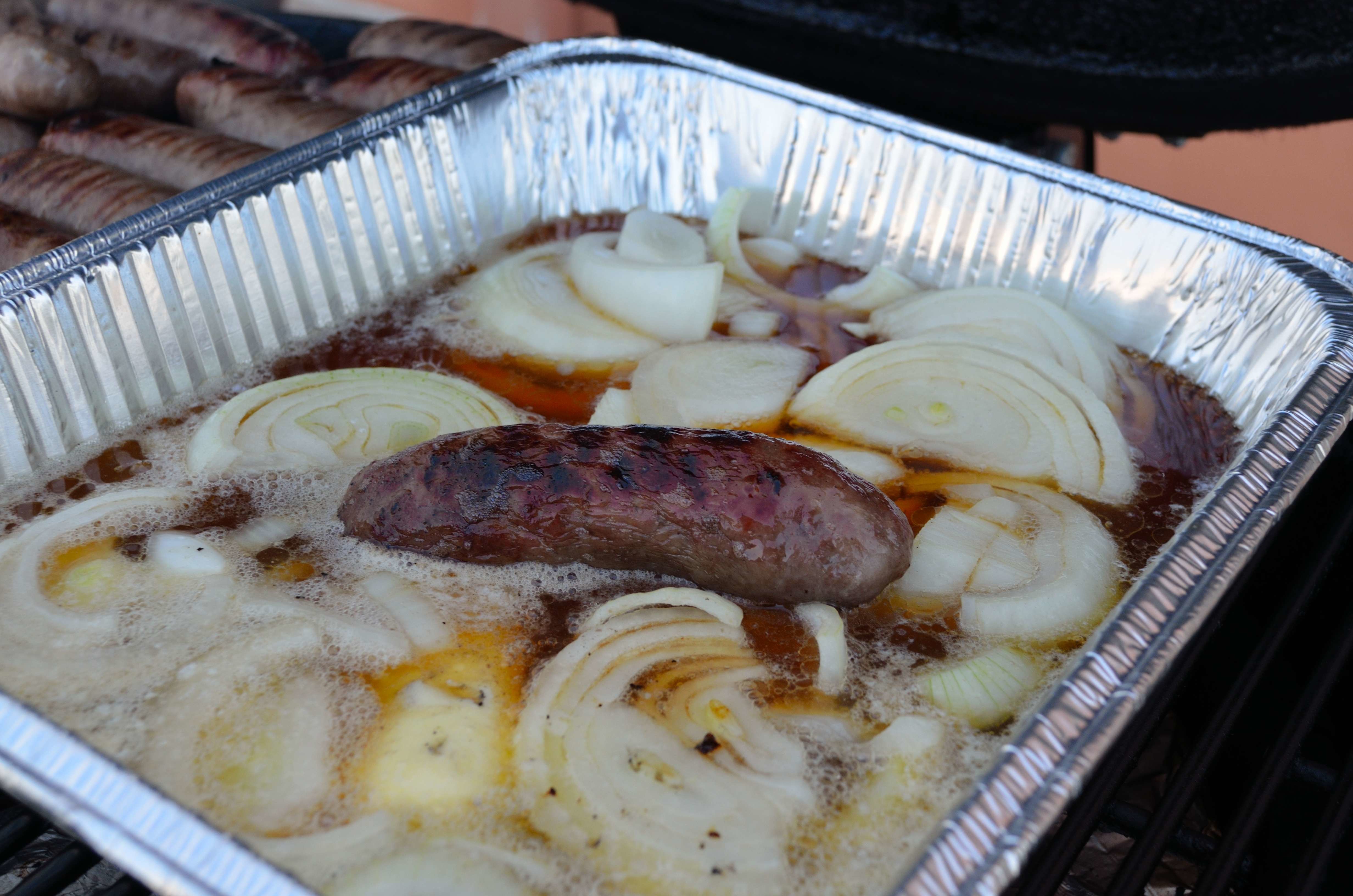 Grill the brats, turning once, until their internal temp is 160. A thermapen is a helpful tool here. They are ready for the brat tub!