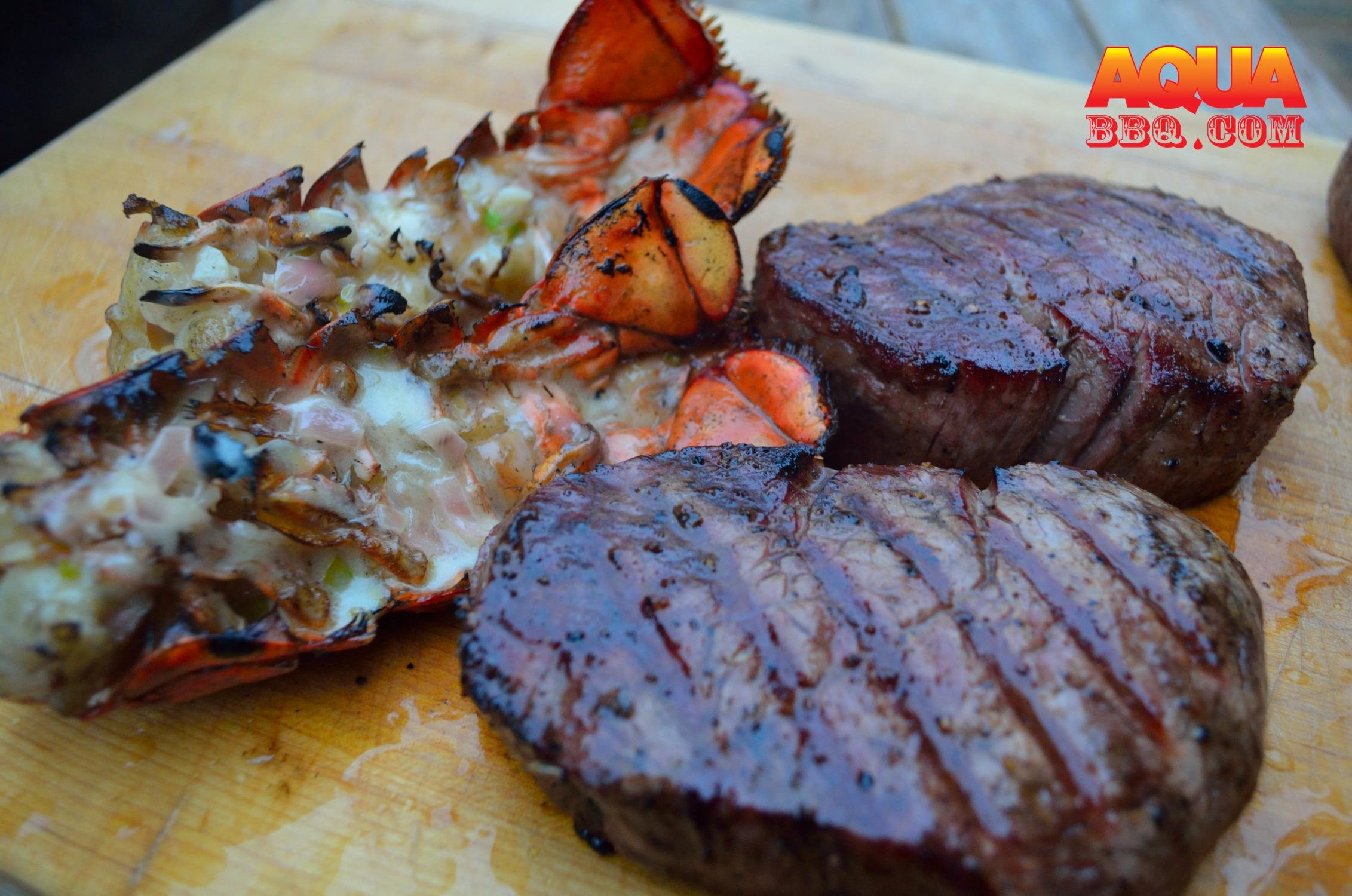 Cook the steaks to your preferred temp- we would recommend 130 or so. Apply another coat of the butter mixture to the tails and squeeze fresh lemon juice on both the lobster and the filet. Enjoy!
