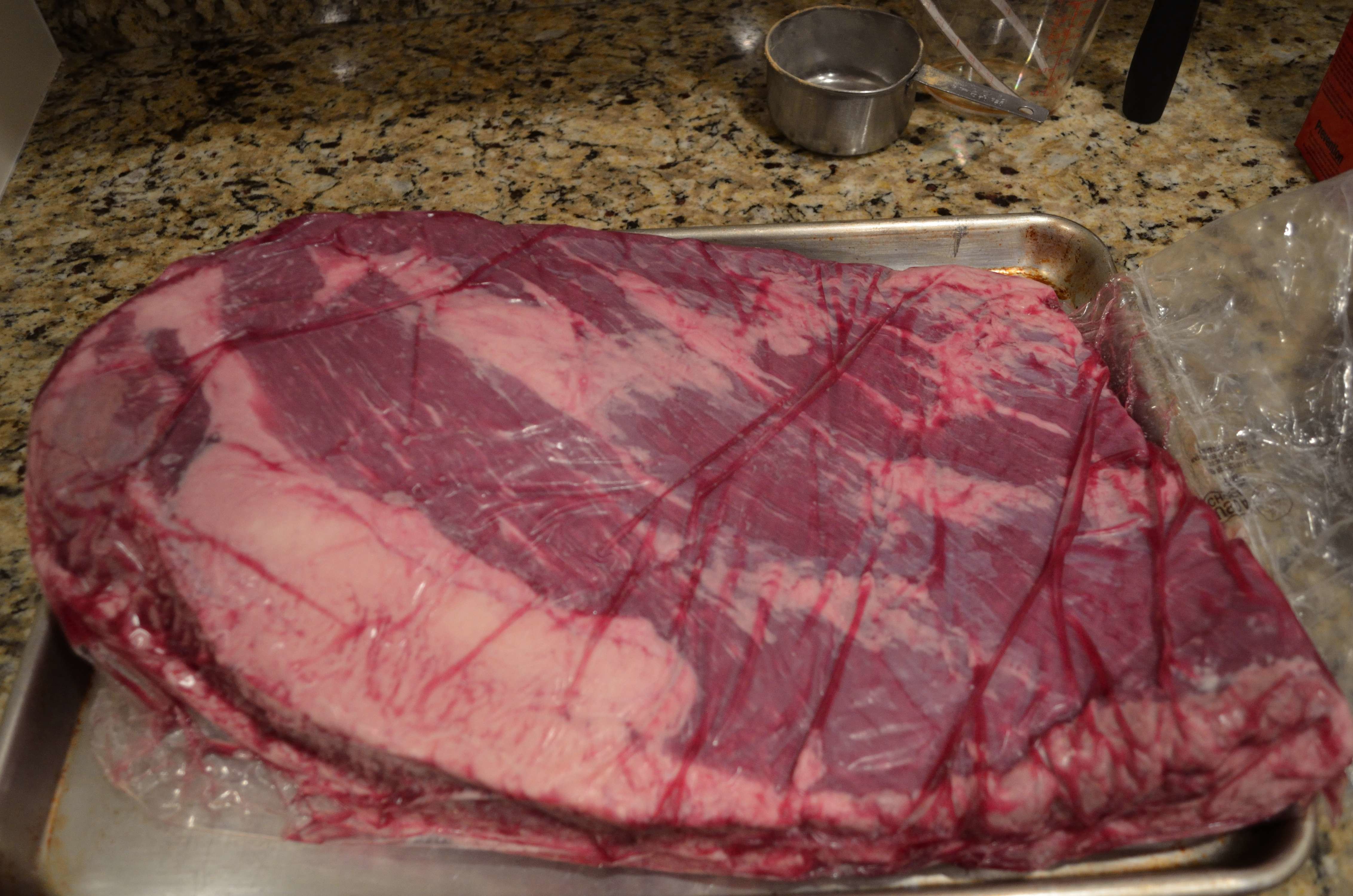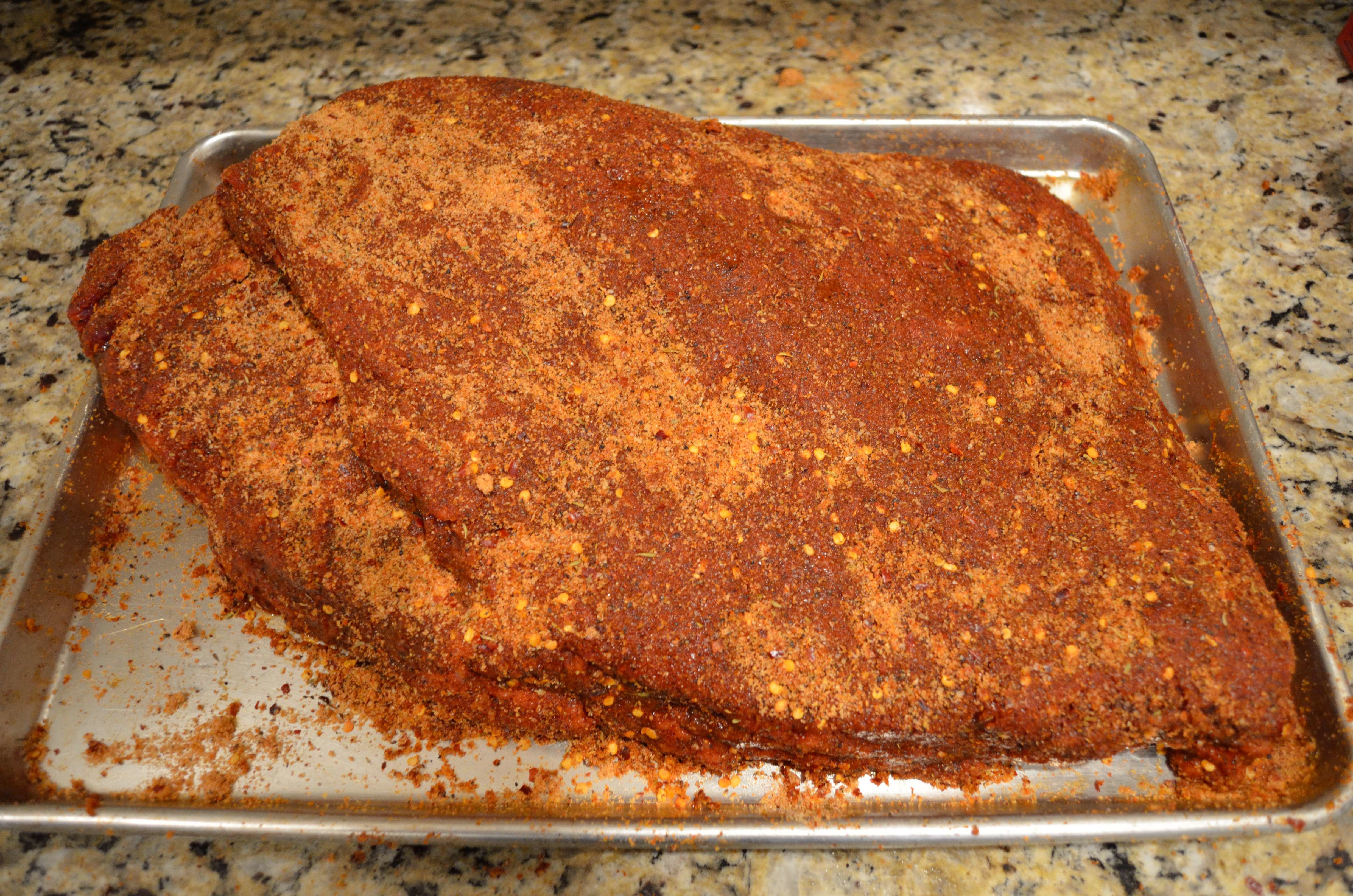Rub the brisket well with your favorite rub- we used the BBQ Joint’s Brisket Rub. This rub can be as simple as kosher salt and cracked pepper.
