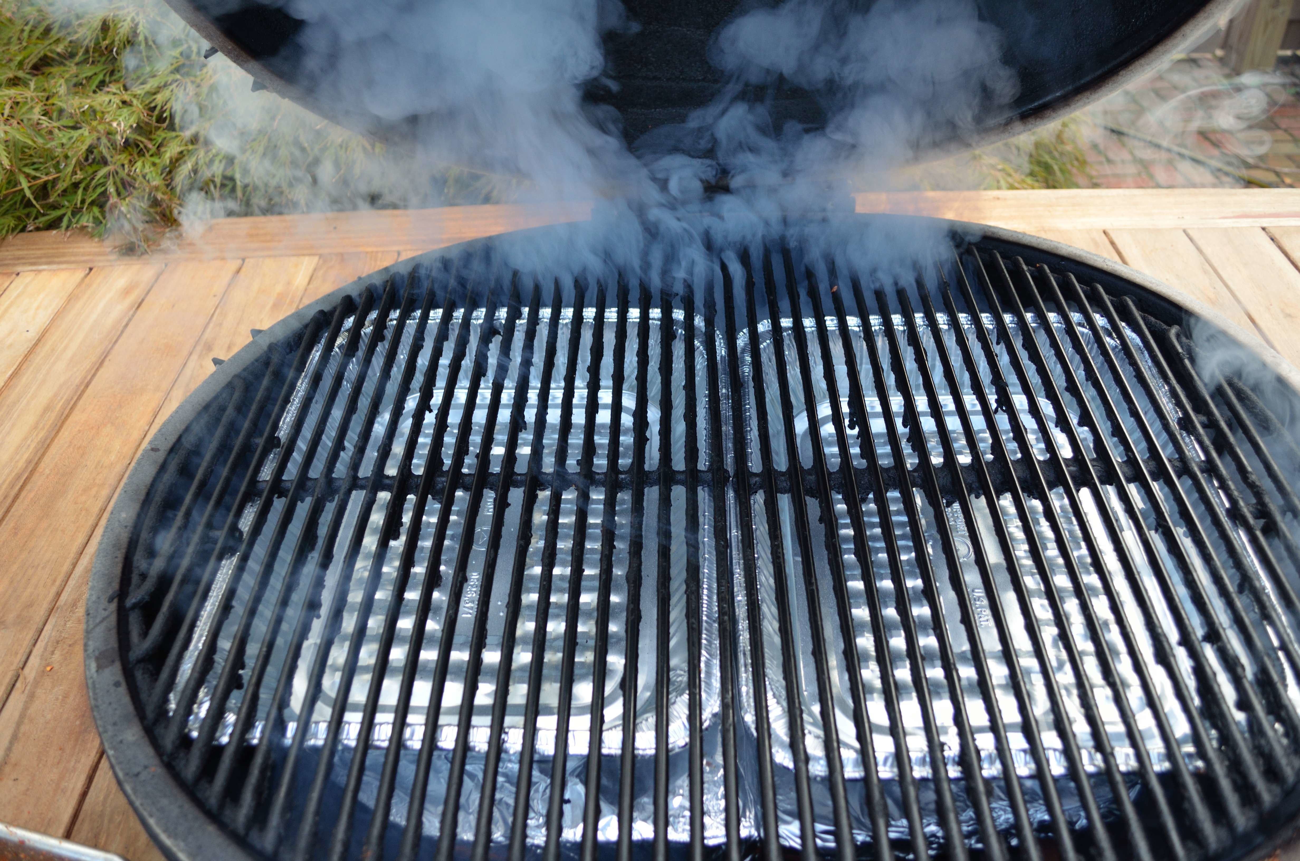 Prepare the Primo for smoking using the smoking wood of your choice- hickory, apple, cherry, oak & mesquite all work well for brisket. Also, unique to smoking brisket, we recommend placing pans of water on top of the ceramic d plates. Target a smoking temp of 250.