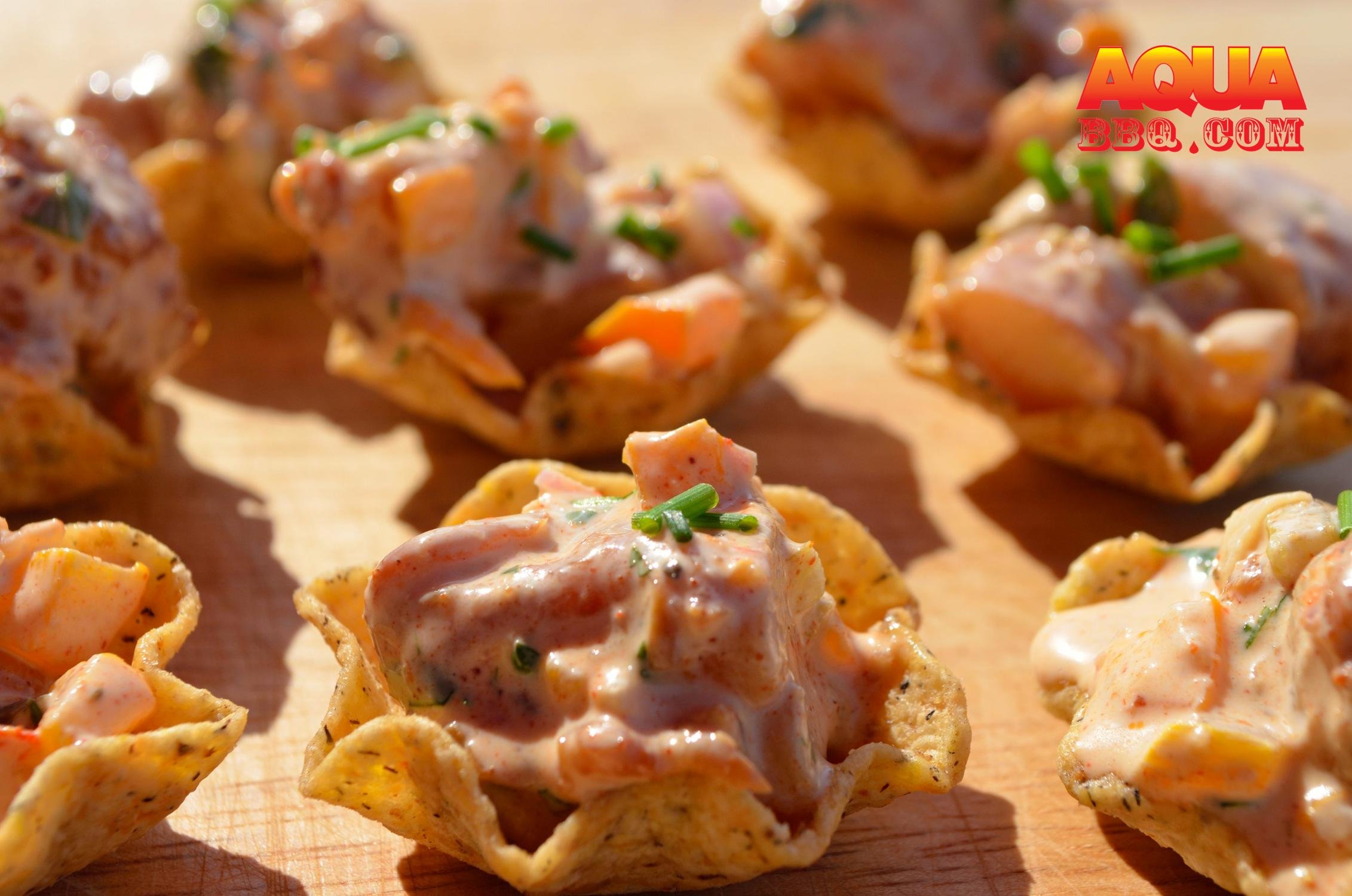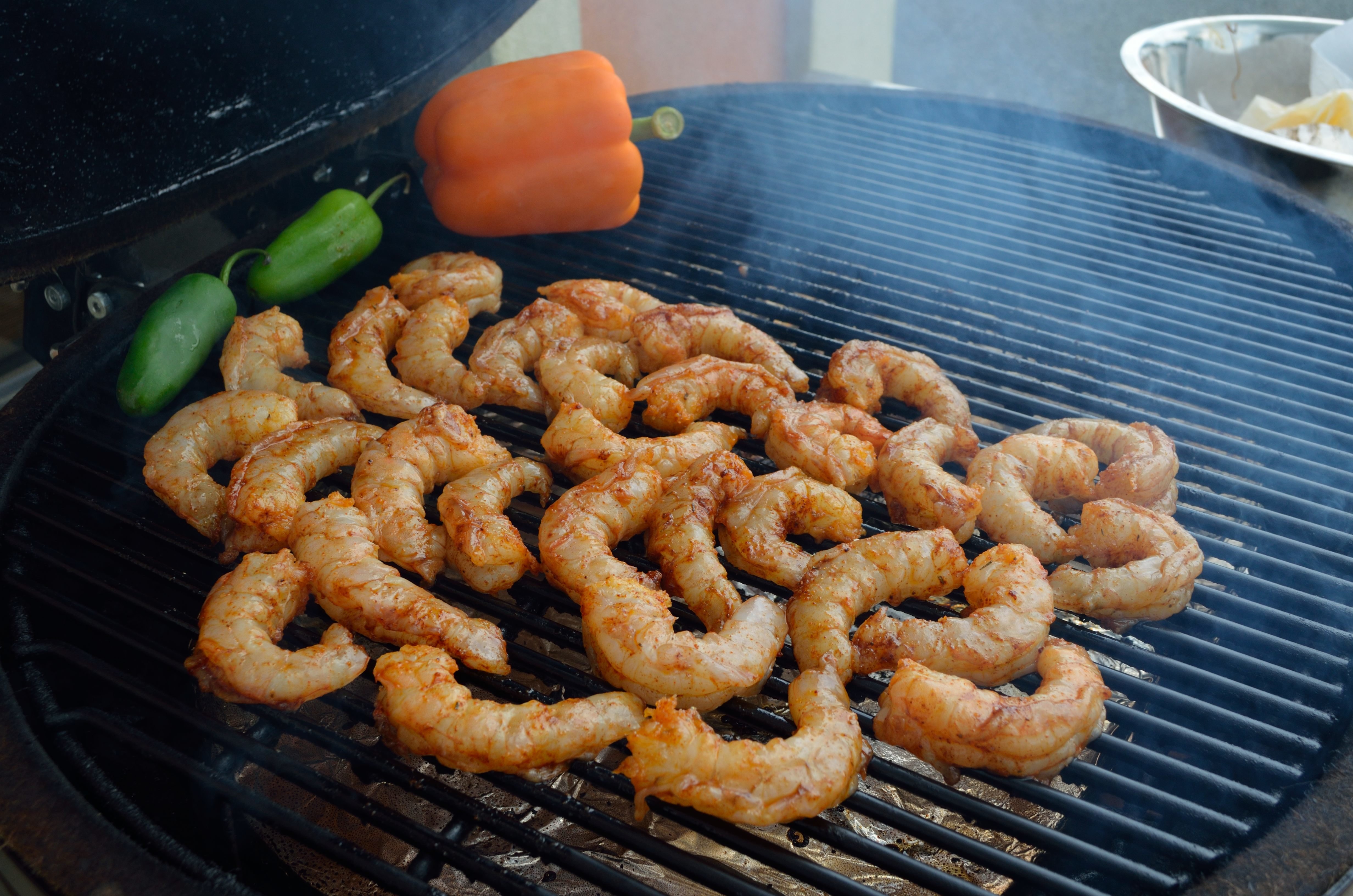 Smoked Shrimp can be enjoyed in a number of ways – our two favorite are hot off the Primo or in a cold shrimp salad. Here we smoked some peppers along with the shrimp to give the salad a subtle depth of flavor.