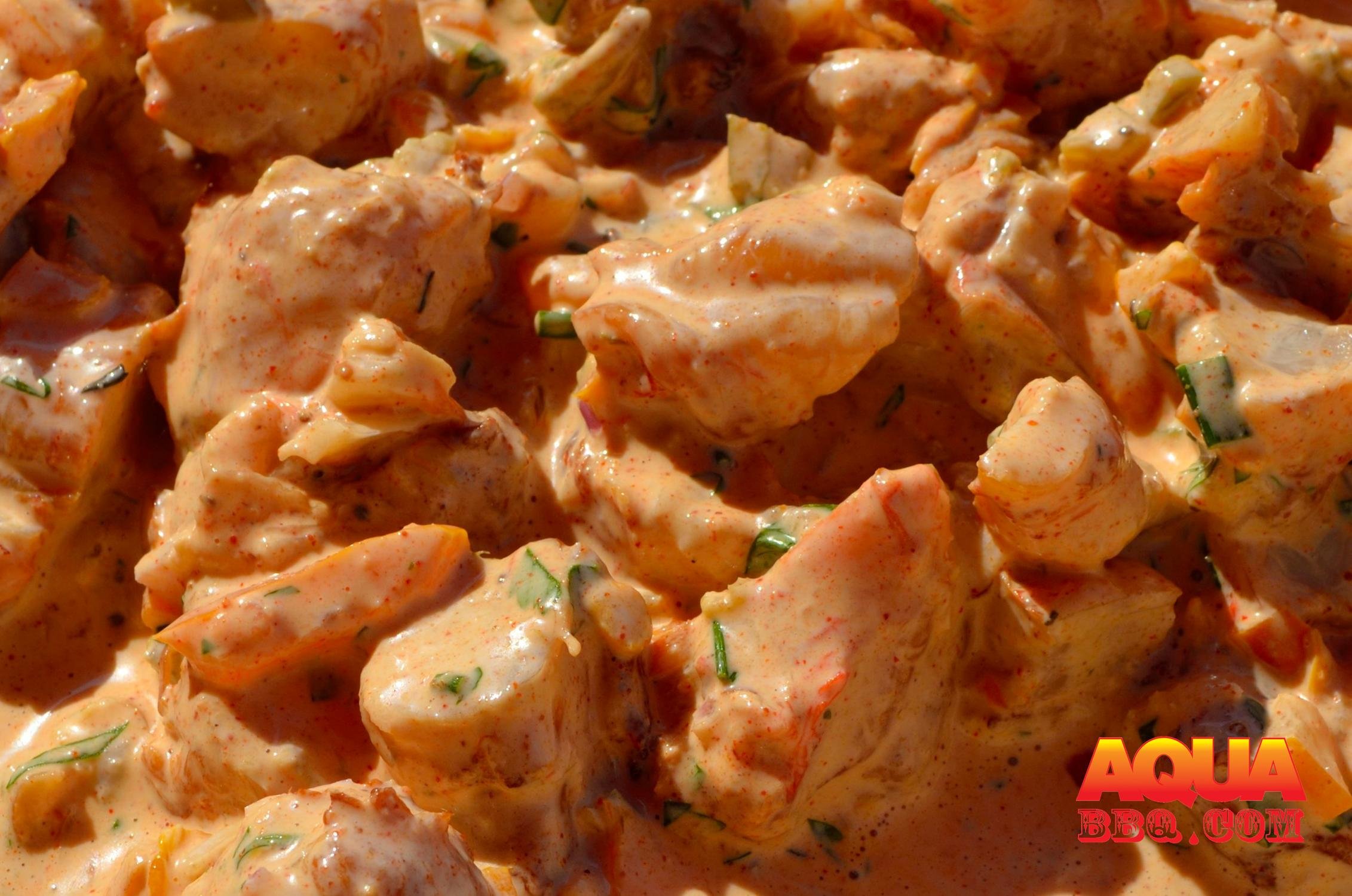 - 2 lbs of smoked shrimp, cold & chopped into 1/4″ to 1/2″ pieces